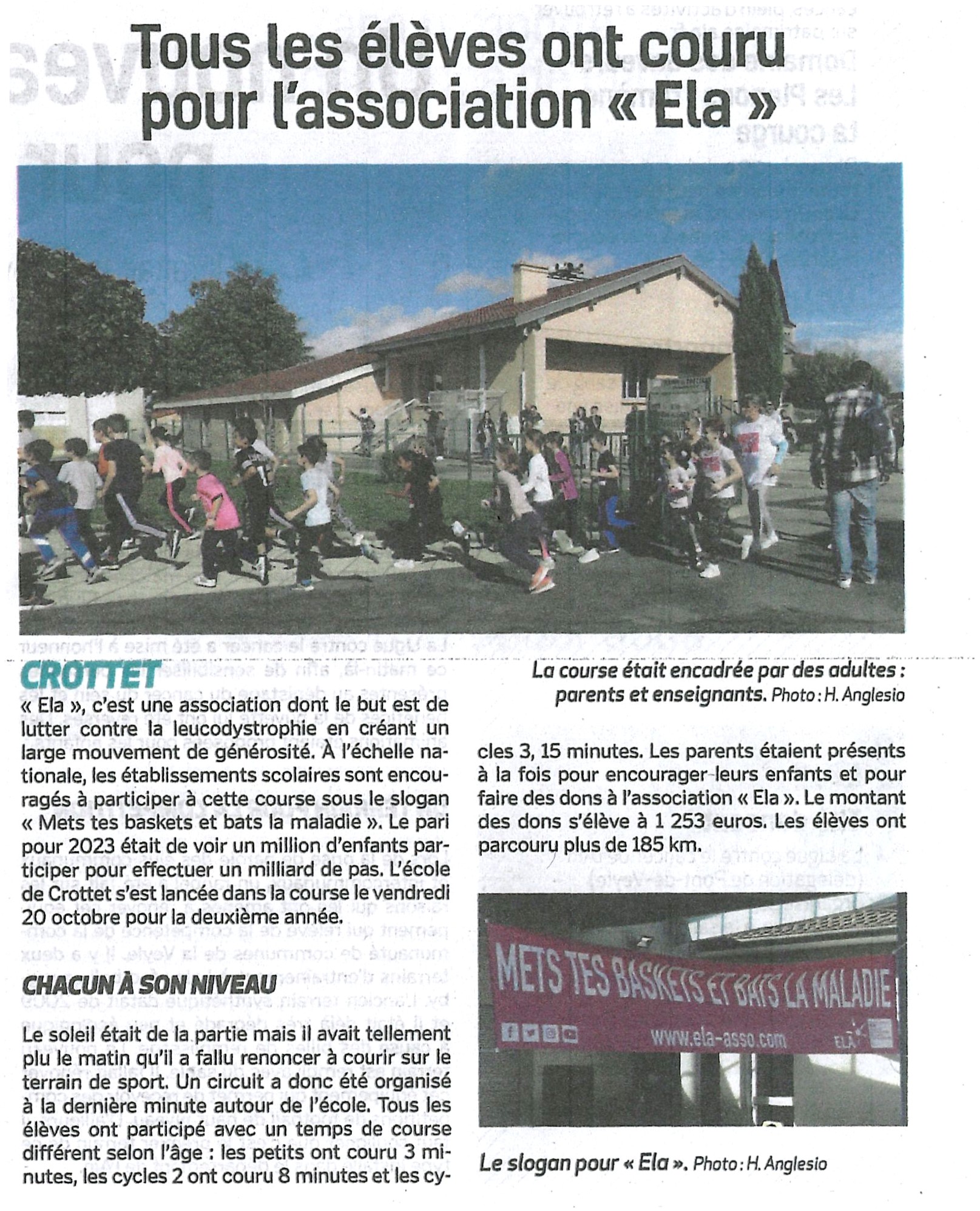 Accueil / Crottet dans la presse ! / Espace presse / Voix de l'Ain 2023 10 27 Tous les élèves ont couru pour l association ELA