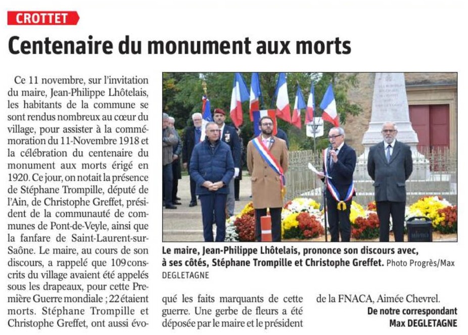 Cérémonie du 11 novembre avec le centenaire du monument aux morts