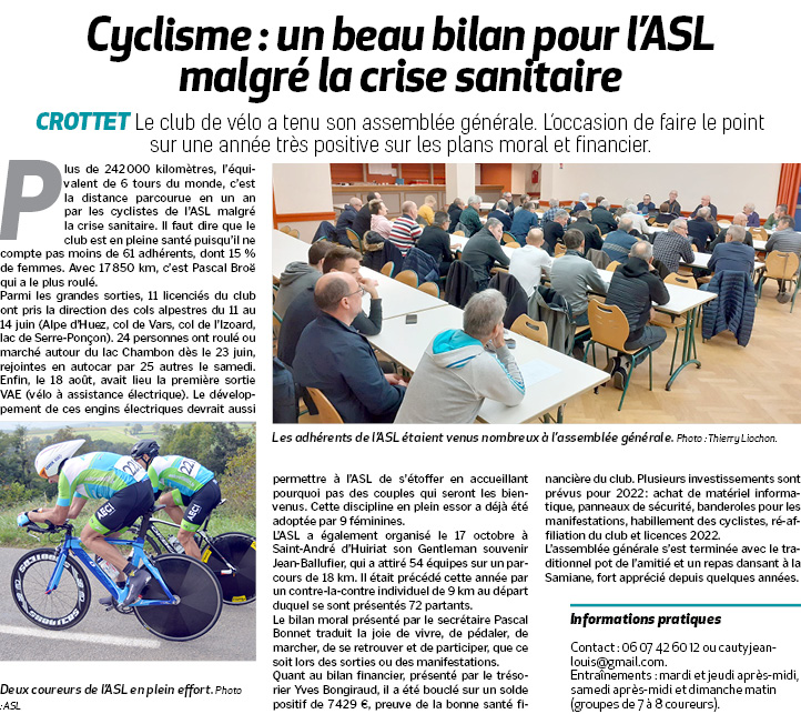 Cyclisme : un beau bilan pour l'ASLmalgré la crise sanitaire