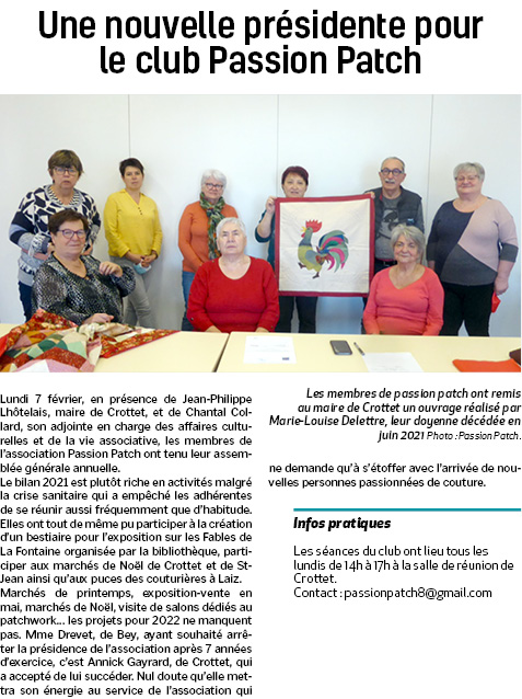 Une nouvelle présidente pour le club Passion Patch