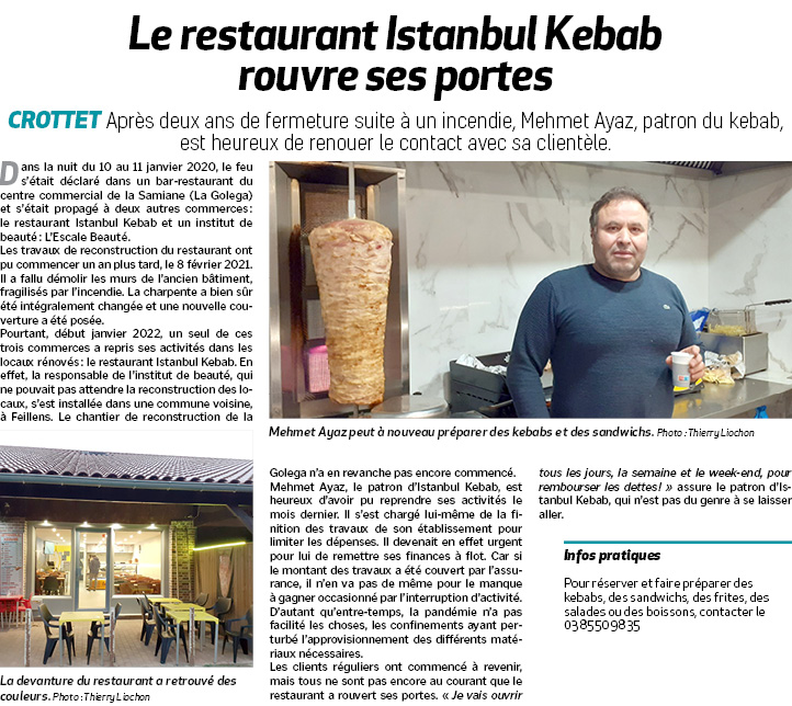 Le restaurant Istanbul Kebab rouvre ses portes