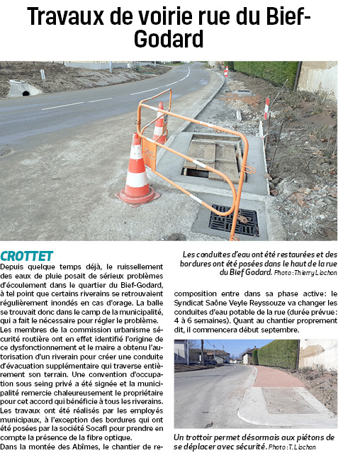 Accueil / Crottet dans la presse ! / Espace presse / Voix de l'Ain 2022 02 17 Travaux de voirie rue du Bief-Godard