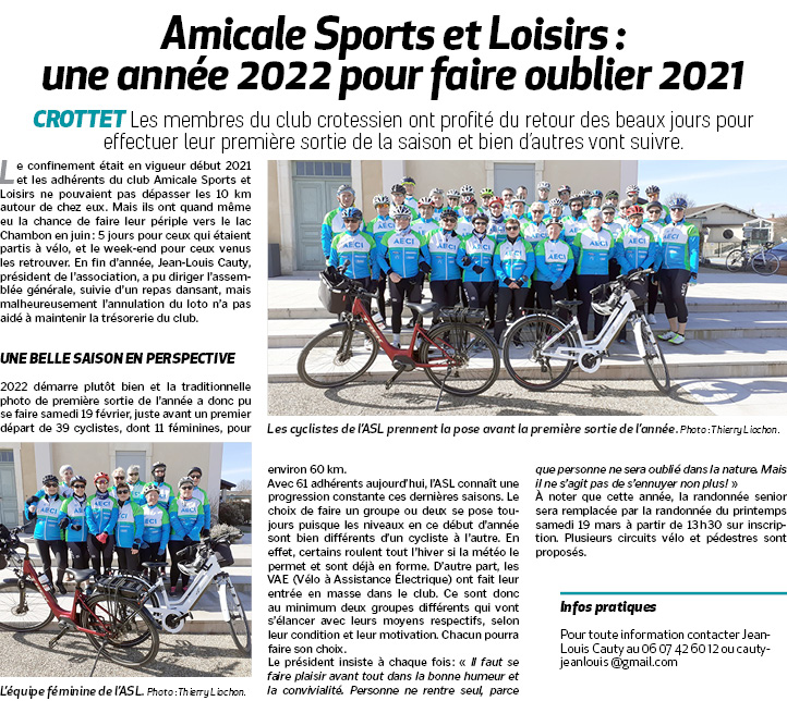 Accueil / Crottet dans la presse ! / Espace presse / Voix de L'ain 2022 02 24 Amicale Sports et Loisirs : une année 2022 pour faire oublier 2021