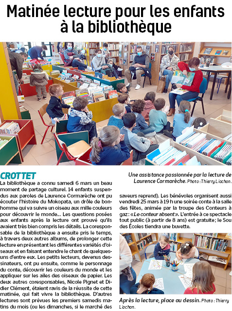 Accueil / Crottet dans la presse ! / Espace presse / Voix de l'Ain 2022 03 03 Matinée lecture pour les enfants à la bibliothèque