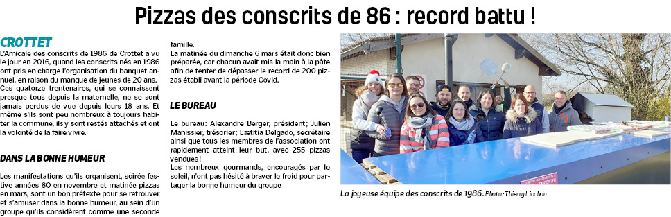 Accueil / Crottet dans la presse ! / Espace presse / Voix de l4ain 2022 03 10 Pizzas des conscrits de 86 : record battu !