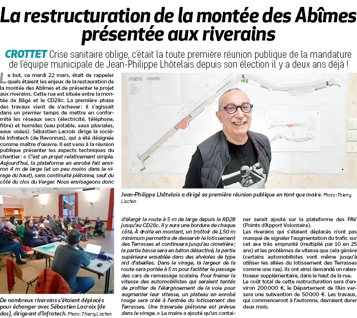 Accueil / Crottet dans la presse ! / Espace presse / Voix de l'Ain 2022 03 31 La restructuration de la montée des Abîmes présentée aux riverains