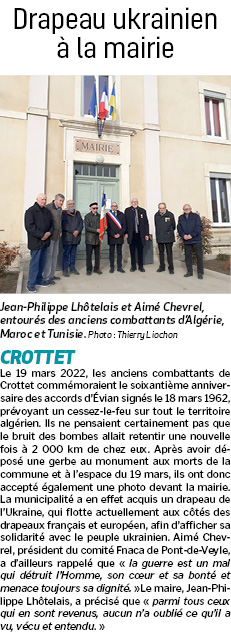 Accueil / Crottet dans la presse ! / Espace presse / Voix de l'Ain 2022 03 31 Drapeau ukrainien à la mairie