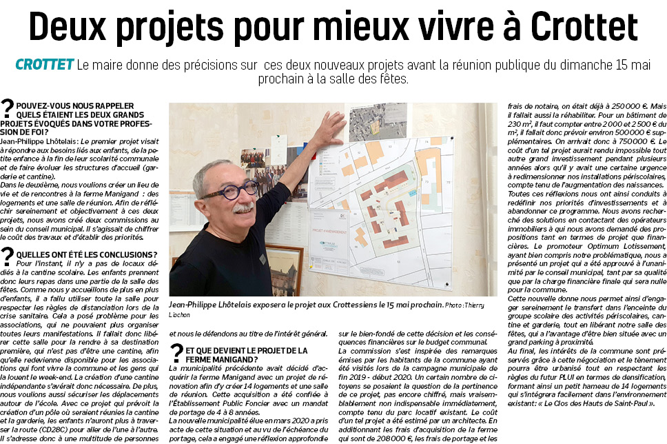 Accueil / Crottet dans la presse ! / Espace presse / Voix de l'Ain 2022 04 15 Deux projets pour mieux vivre à Crottet