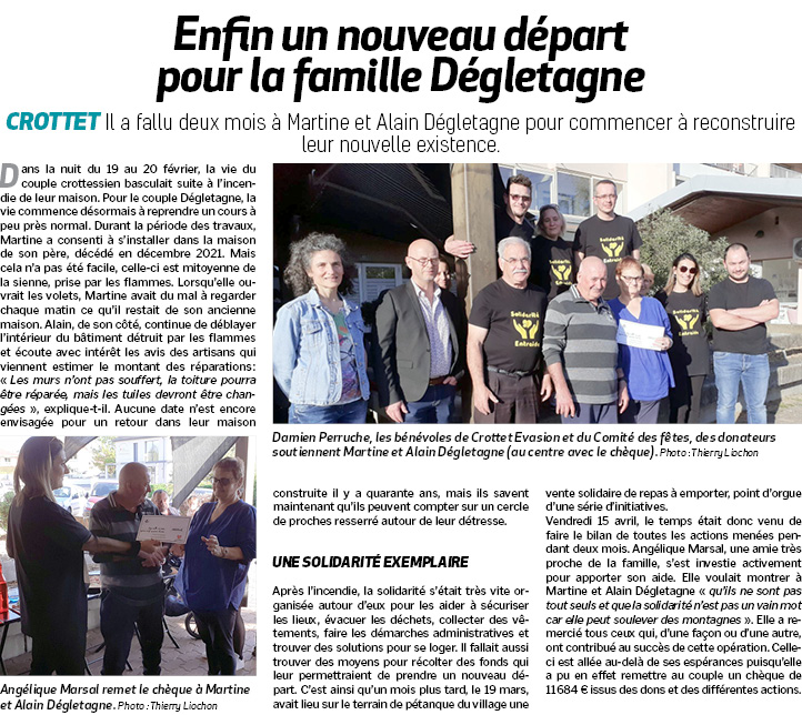 Accueil / Crottet dans la presse ! / Espace presse / Voix de l'Ain 2022 04 22 Enfin un nouveau départ pour la famille Dégletagne