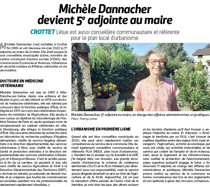 Accueil / Crottet dans la presse ! / Espace presse / Voix de l'Ain 2022 07 22 Michèle Dannacher devient 5e adjointe au maire
