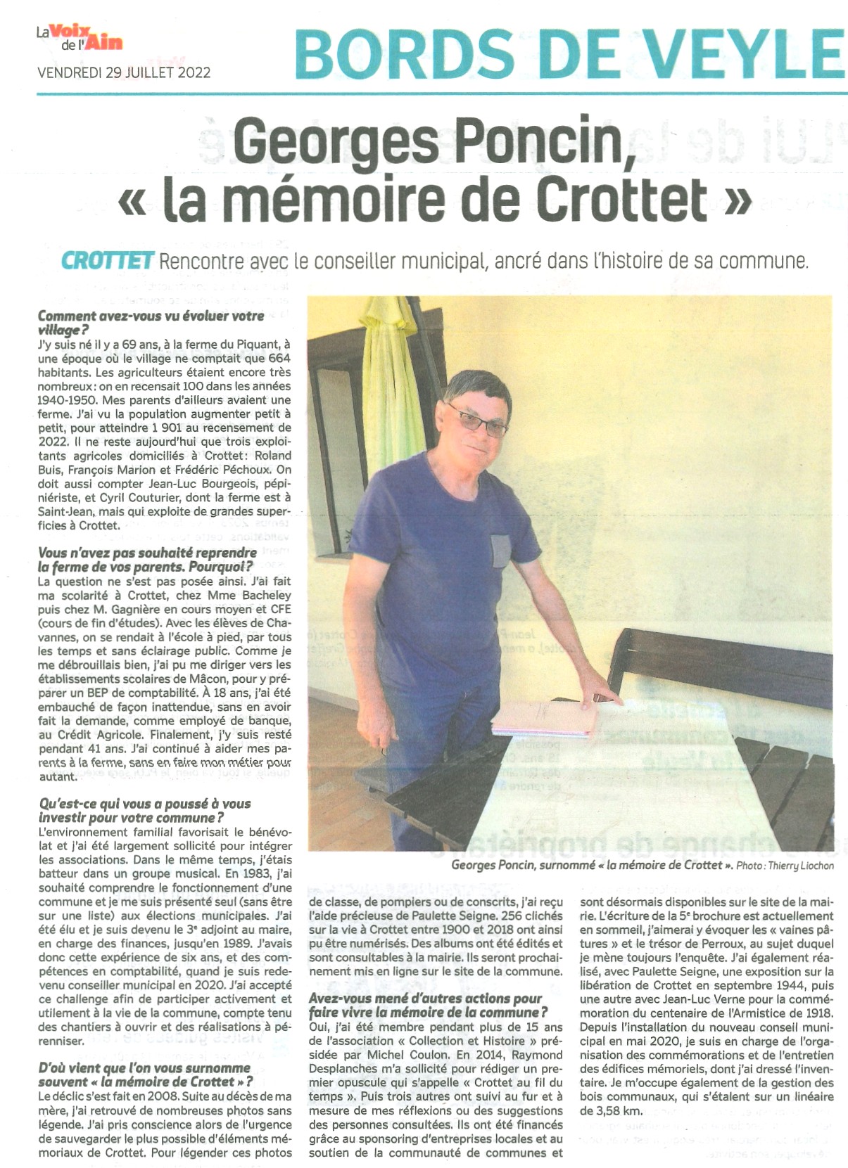 Accueil / Crottet dans la presse ! / Espace presse / Voix de l'Ain 29 juillet 2022 Georges Poncin la mémoire de Crottet