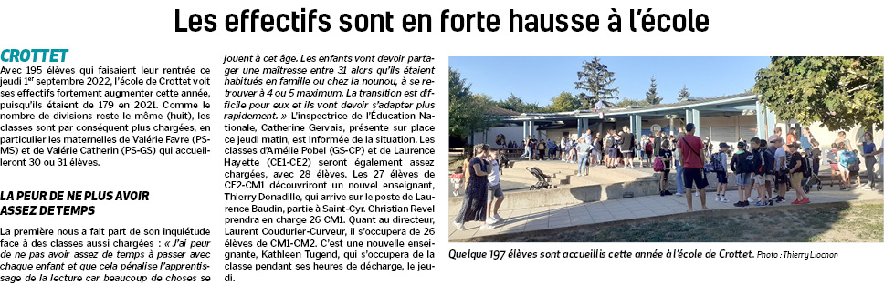 Accueil / Crottet dans la presse ! / Espace presse / Voix de l'Ain 2022 09 09 Les effectifs sont en forte hausse à l’école