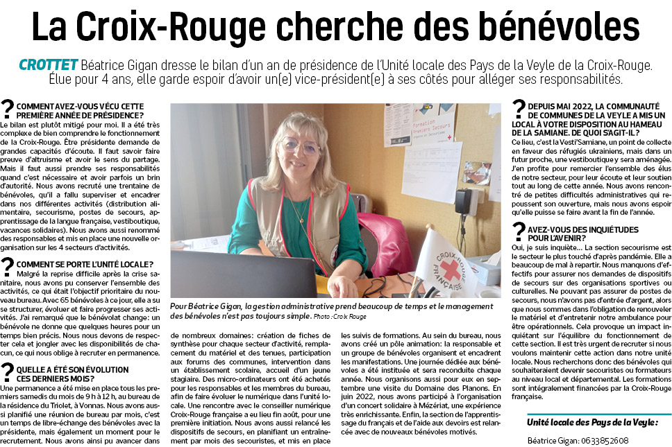 Accueil / Crottet dans la presse ! / Espace presse / Voix de l'Ain 2022 09 16 La Croix-Rouge cherche des bénévoles