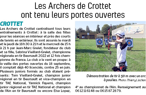 Accueil / Crottet dans la presse ! / Espace presse / Voix de l'Ain 2022 09 30 Les Archers de Crottet ont tenu leurs portes ouvertes