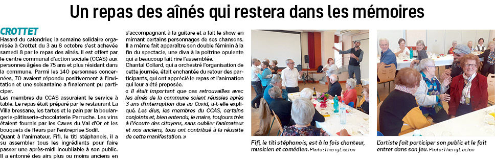 Accueil / Crottet dans la presse ! / Espace presse / Voix de l'Ain 2022 10 14 Un repas des aînés qui restera dans les mémoires