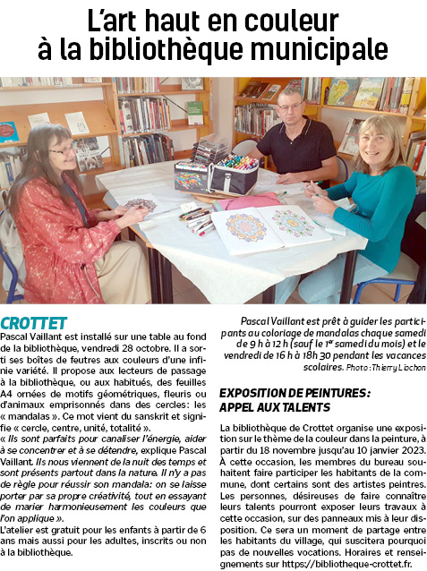 Accueil / Crottet dans la presse ! / Espace presse / Voix de l'Ain 2022 11 04 L’art haut en couleur à la bibliothèque municipale
