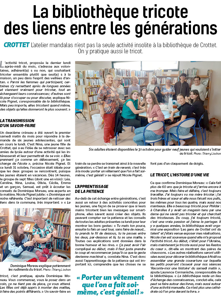 Accueil / Crottet dans la presse ! / Espace presse / VDA 2022 11 11 La bibliothèque tricote des liens entre les générations