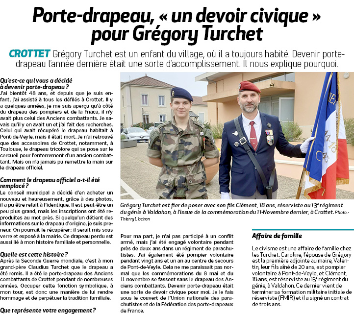 Accueil / Crottet dans la presse ! / Espace presse / VDA 2022 11 18 Porte-drapeau un devoir civique pour Grégory Turchet