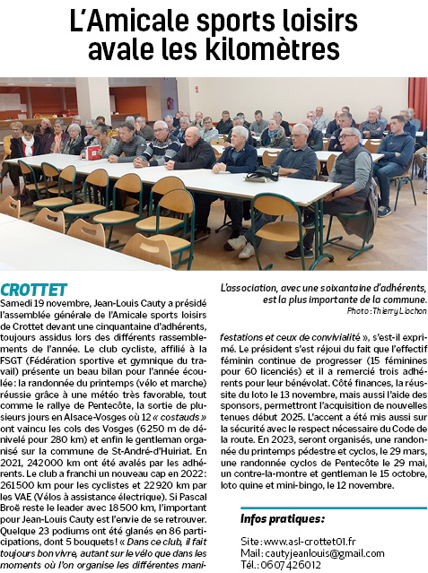 Accueil / Crottet dans la presse ! / Espace presse / VDA 2022 11 25 L’Amicale sports loisirs avale les kilomètres