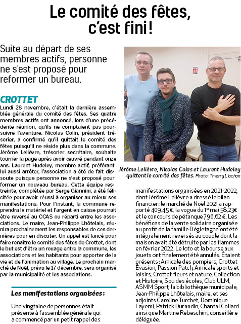 Accueil / Crottet dans la presse ! / Espace presse / VDA 2022 12 02 Le comité des fêtes, c’est fini !
