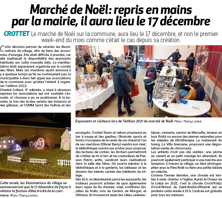 Accueil / Crottet dans la presse ! / Espace presse / VDA 2022 12 09 Marché de Noël : ce sera le 17 décembre à Crottet