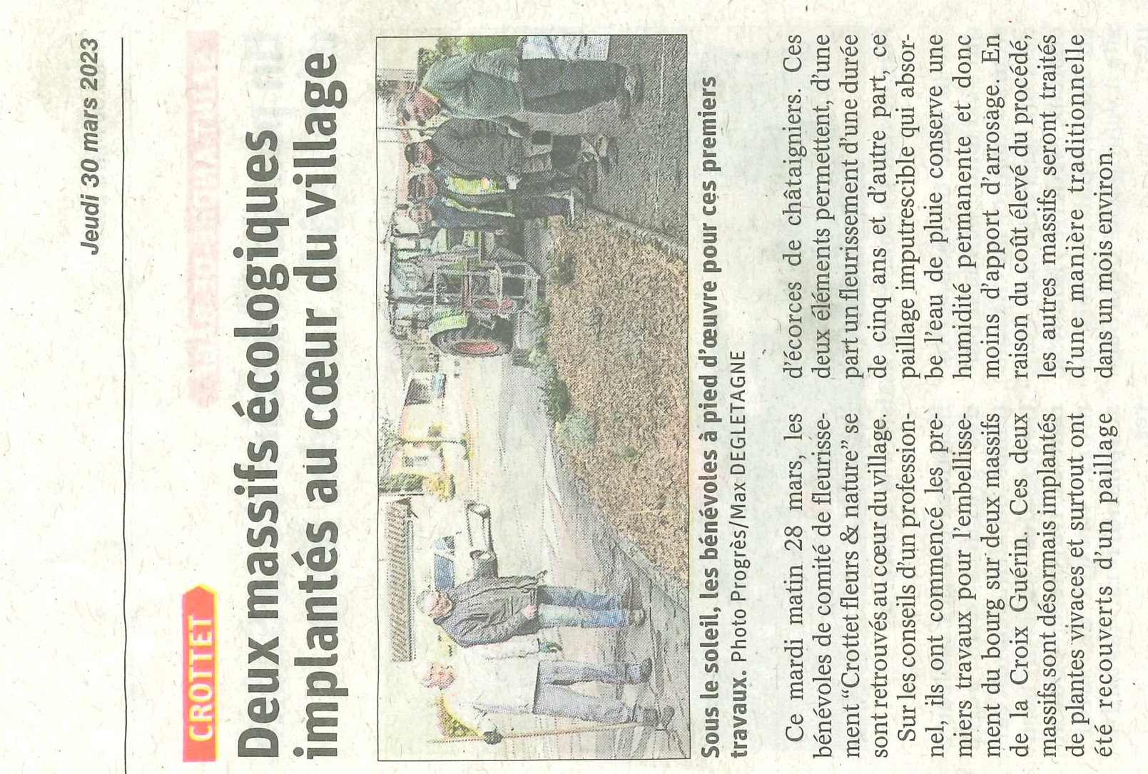 Accueil / Crottet dans la presse ! / Espace presse / Le progrès 30 03 2023 Deux massifs écologiques implantés au coeur du village