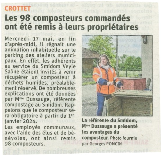 Accueil / Crottet dans la presse ! / Espace presse / Le Progrès 20230524 98 composteurs remis à leurs propriétaires