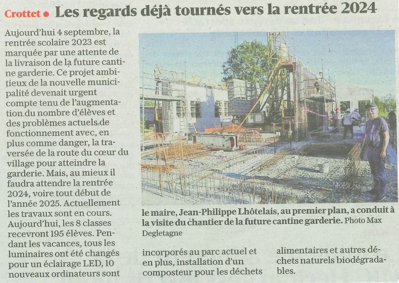 Accueil / Crottet dans la presse ! / Espace presse / Le progrès 05 09 2023 Les regards déjà tournés vers la rentrée 2024