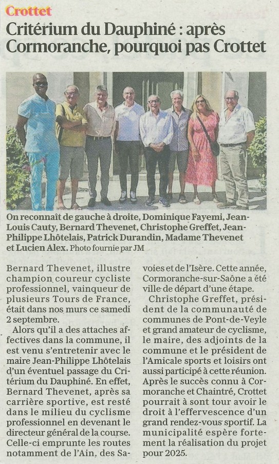 Accueil / Crottet dans la presse ! / Espace presse / 2023 09 09 Le Progrès Critérium du Dauphiné