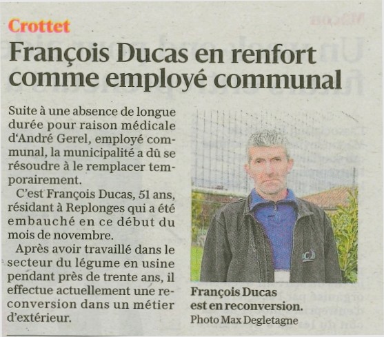 Accueil / Crottet dans la presse ! / Espace presse / Le Progrès 2023 11 11 François Ducas en renfort comme employé communal