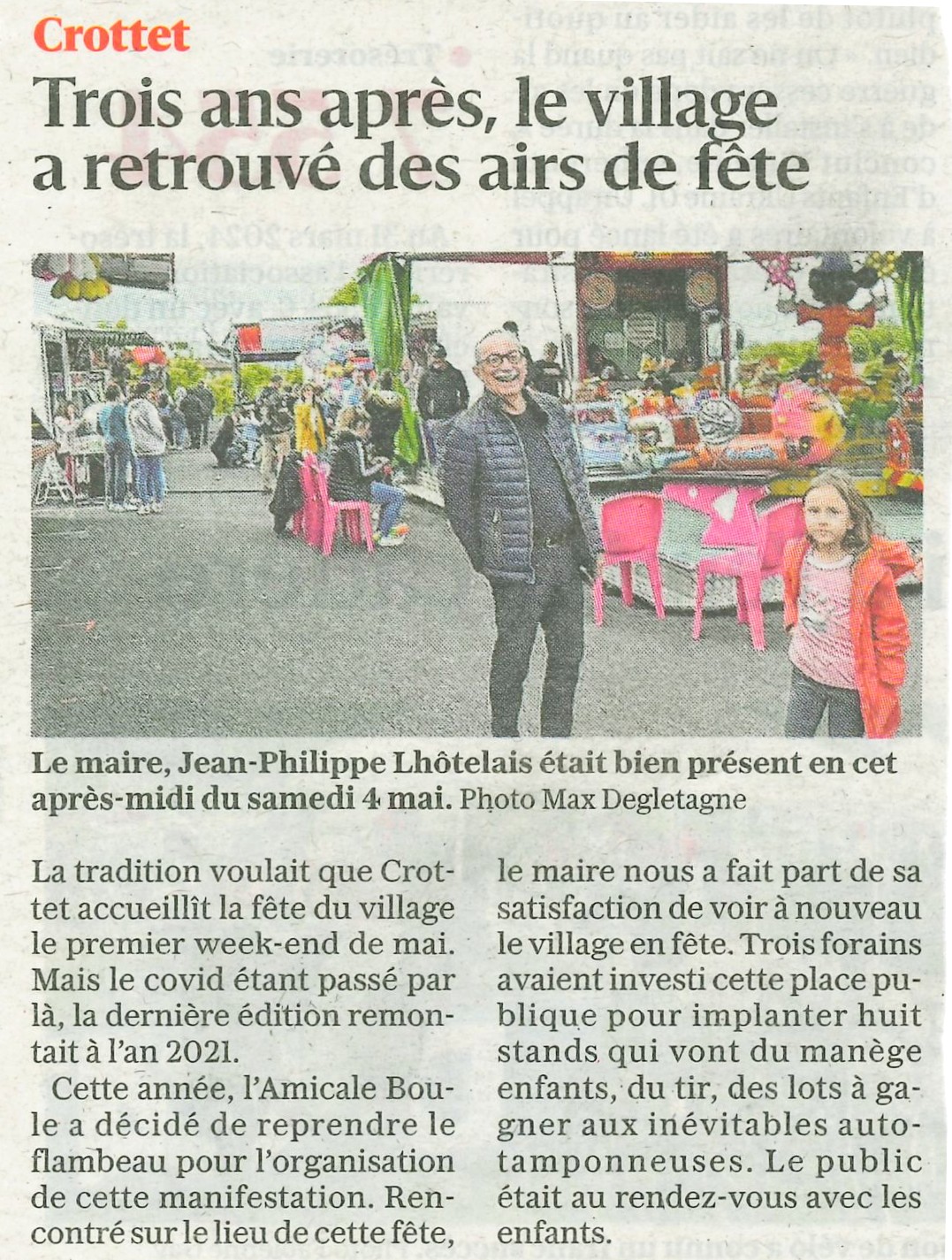 Accueil / Crottet dans la presse ! / Espace presse / Le progrès 05 05 2024 Trois ans après le village a retrouvé un air de fête