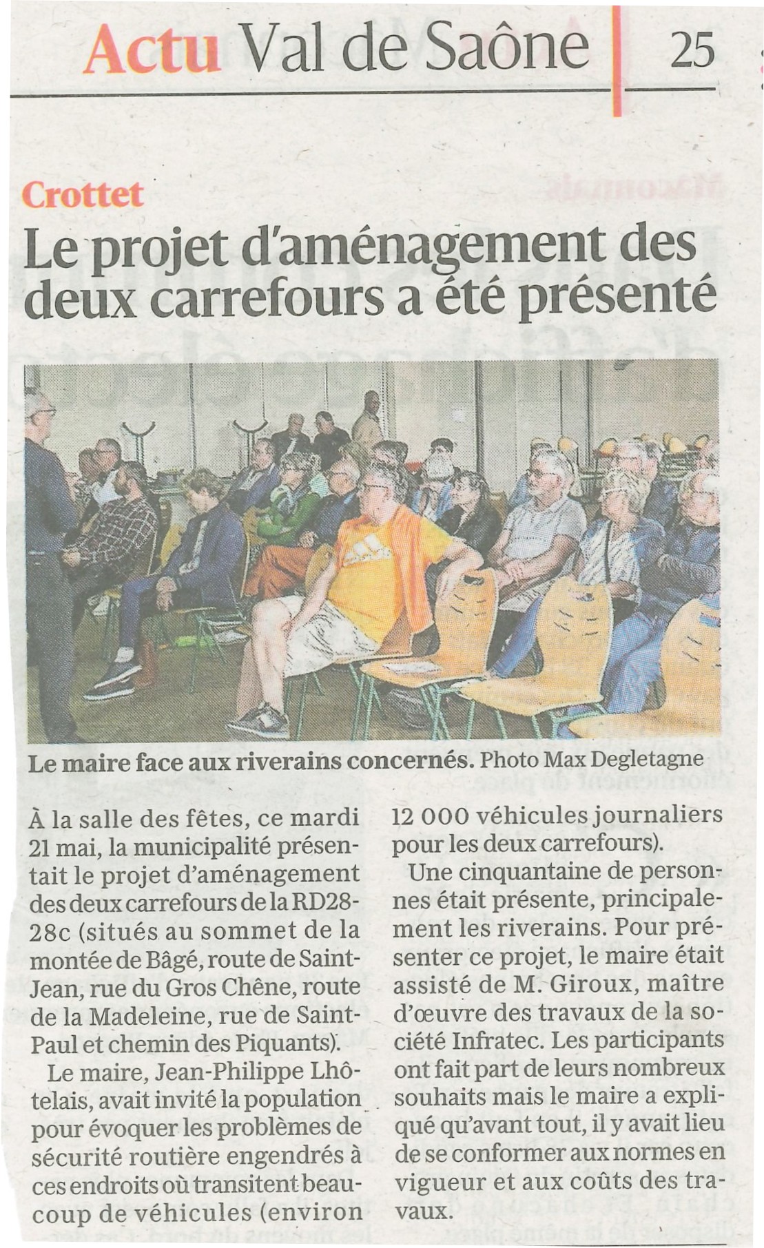 Accueil / Crottet dans la presse ! / Espace presse / Le progrès 24 05 2024 Le projet d'aménagement des deux carrefours a été présenté