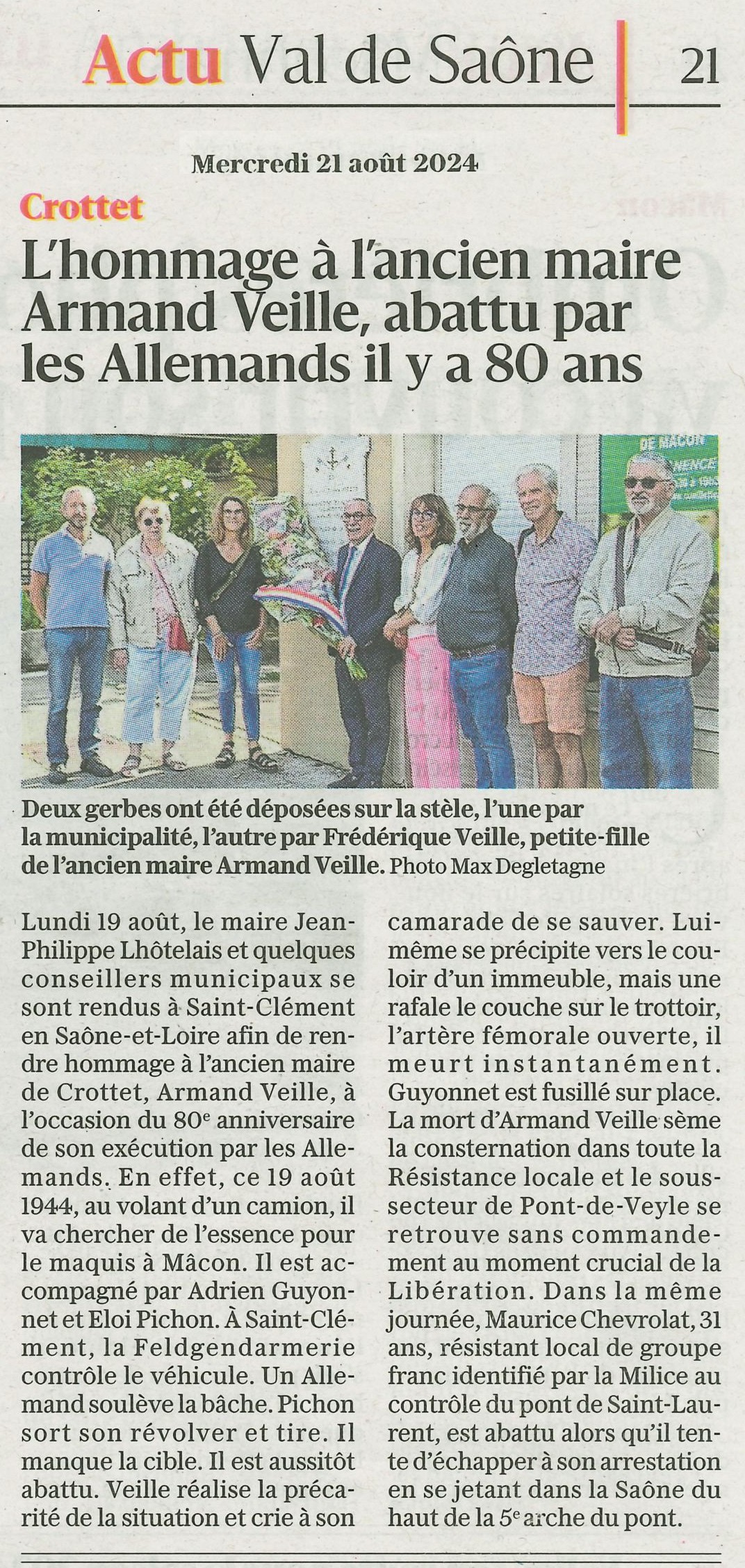 Accueil / Crottet dans la presse ! / Espace presse / Le Progrès 2024 08 21 Hommage Armand Veille.pdf
