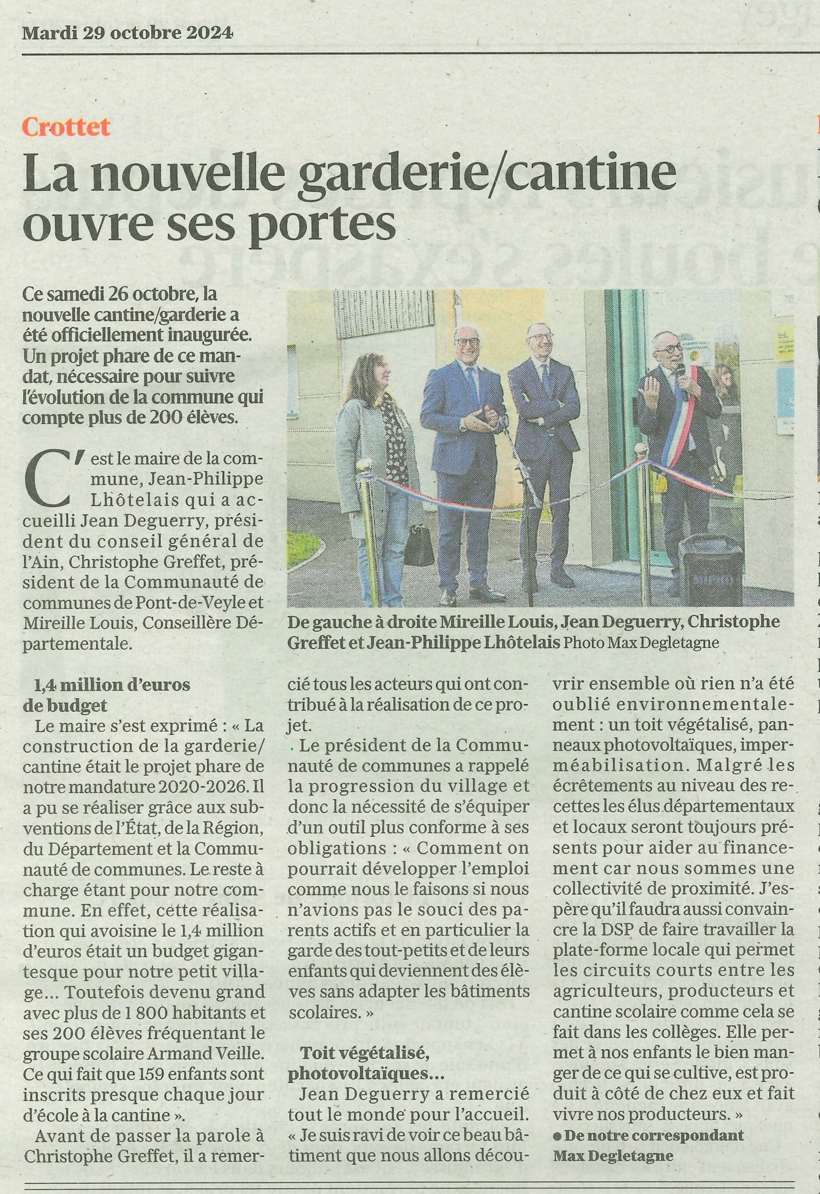 Accueil / Crottet dans la presse ! / Espace presse / Le Progrès 2024 10 29 La nouvelle garderie/cantine ouvre ses portes
